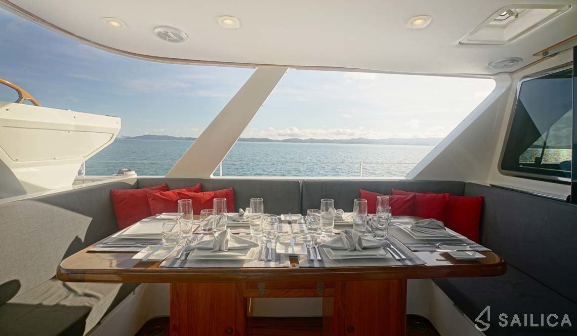 For your convenience, this boat features an Bathing platform, Electric toilet, Kayak, Stern thruster, Tender.