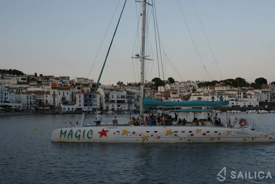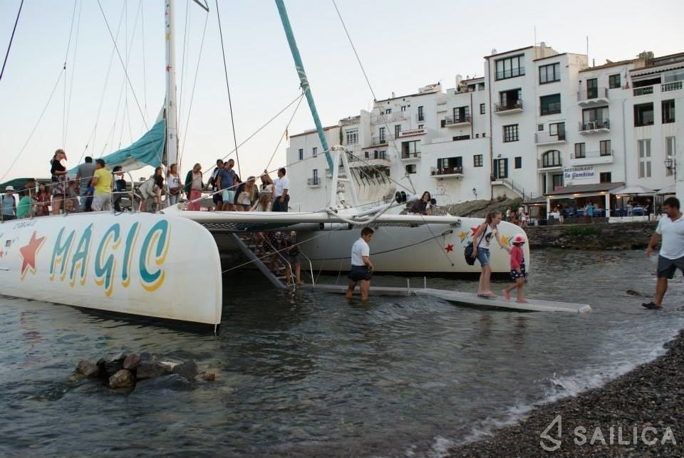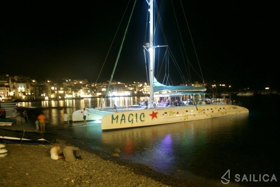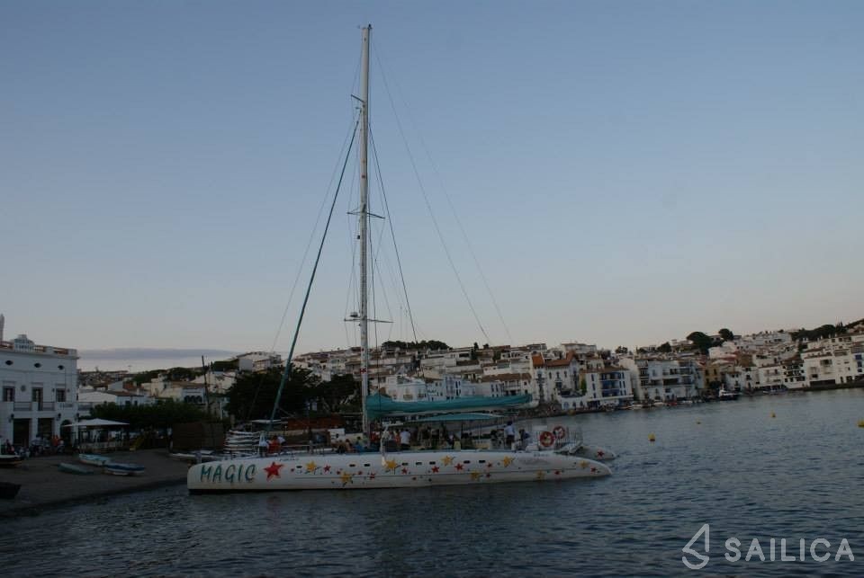 Taiti 75 Magic 3 Catamaran was produced in 1998, and is operated by the Magic Catamarans charter company. This luxurious vessel can comfortably accommodate up to 4 people, it contains 2 cabins and 2 WC. For your convenience, Taiti 75 Magic 3 is equipped with an Bathing platform, Sink, Shower, Kitchen utensils, Inside speakers and much more.