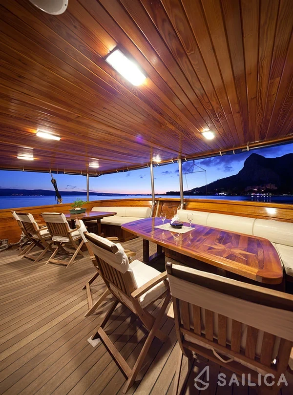 Gulet Tajna Mora is a beautiful gulet built in 2007. This gulet is operated by the Otium Yachts charter company and docked at Marina Spinut.