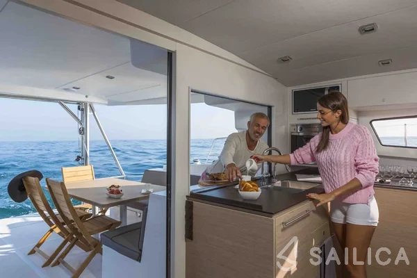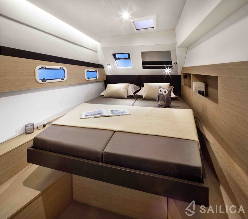 INCLUDED: full reduction of security deposit (0 € at base) // starter pack – (1 gallon water or 4 bottles of 1.5L, 1 bottle of disinfectant, 1 small bottle of washing up liquid, 1 dish cloth, 1 sponge, garbage bags, 1 roll of paper towels, 1 box of matches, 1 roll of toilet paper in each head) // final cleaning // 1 set of bed sheets & towels, dinghy, outboard engine & initial supply of fuel, gas and water tanks// DYC assistance guarantee // 1st & last night in the marina /// NOT INCLUDED: refuelling, gas & water consumption at end of charter, taxes if any, handling fees, additional equipment deposit