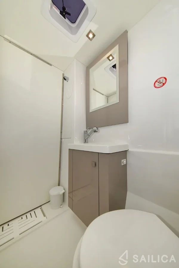На Astréa 42 CLASS есть все условия для комфортного отдыха: 4 гальюна, Лейзи бег, Лейзи джек, электрическая лебедка, TV, Inverter.