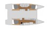 Astréa 42 CLASS — катамаран 2022 года выпуска от чартерной компании Kiriacoulis. Катамаран принимает до 12 человек, которые могут расположиться в 6 каютах.