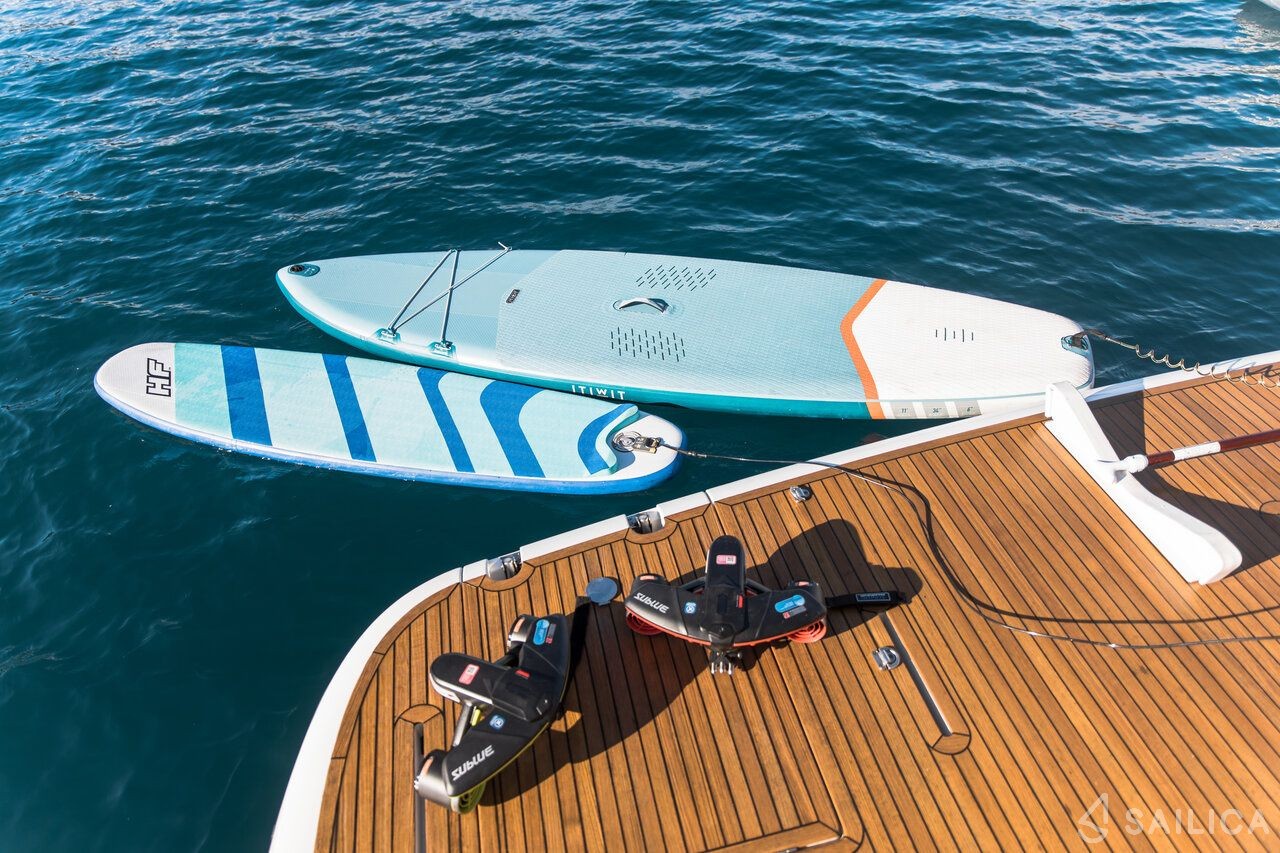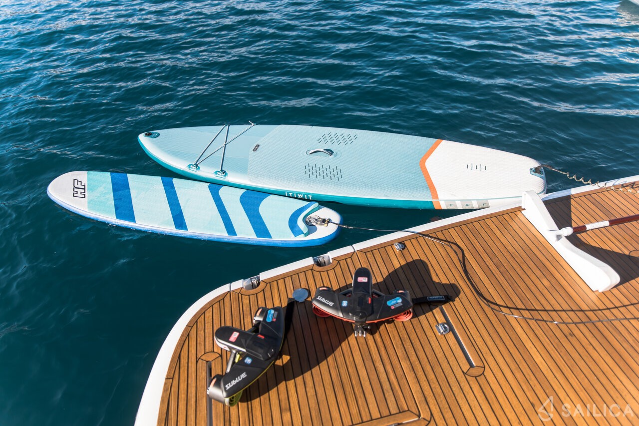 В 5 каютах могут комфортно разместиться до 10 человек. На лодке есть все необходимое для комфортного путешествия: 4 туалета (гальюна), Тиковая палуба, Тиковый кокпит, Dishwasher, Аптечка, Спасательные жилеты.