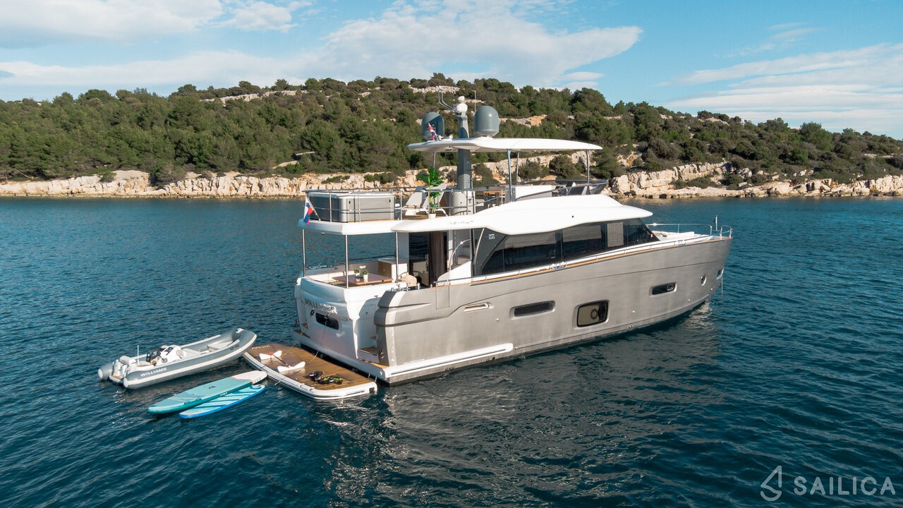 Аренда моторной яхты Azimut Magellano 66 Bollinger — идеальный способ хорошо провести время и исследовать живописные берега Хорватии из мест, недоступных сухопутным туристам. Моторная яхта Azimut Magellano 66 Bollinger произведена в 2017 году и принадлежит чартерной компании Yacht IN.