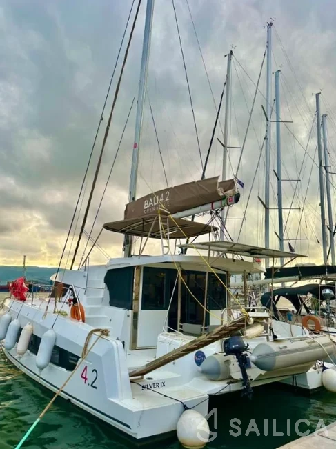 Bali 4.2 Silver IX — катамаран 2023 года выпуска от чартерной компании Aquatrotters. Катамаран принимает до 10 человек, которые могут расположиться в 5 каютах.