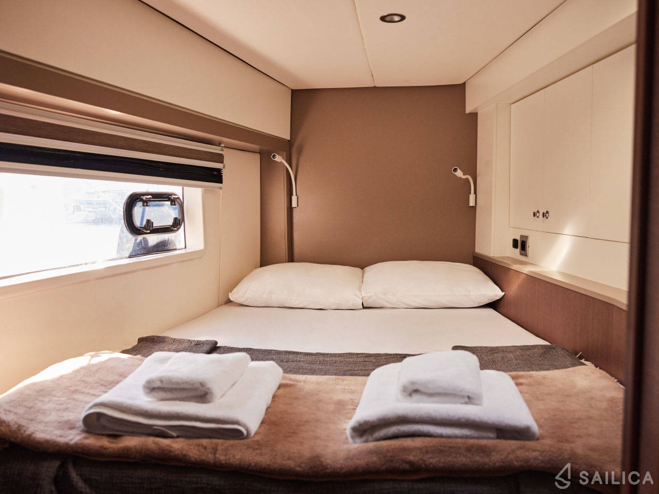Bali 4.2 Toddler — катамаран 2021 года выпуска от чартерной компании Ediba Sailing. Катамаран принимает до 10 человек, которые могут расположиться в 5 каютах.