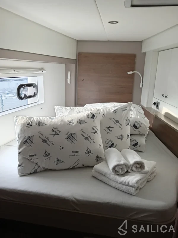 На Bali 4.2 Mirjana есть все условия для комфортного отдыха: 4 гальюна, Лейзи бег, Горячая вода, Анемоментр/Ворона, Виндекс, Брашпиль.