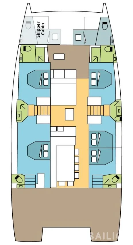 Bali 5.4. Q-LOVE — катамаран 2021 года выпуска от чартерной компании Dream Yacht Charter. Катамаран принимает до 14 человек, которые могут расположиться в 7 каютах.