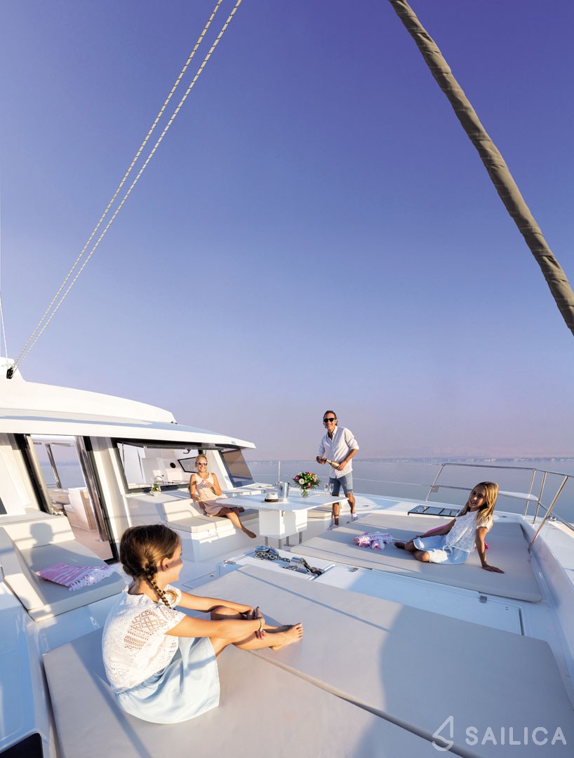 Bali 5.4. Alfa.bm2 — катамаран 2023 года выпуска от чартерной компании World Wide Charter. Катамаран принимает до 10 человек, которые могут расположиться в 5 каютах.