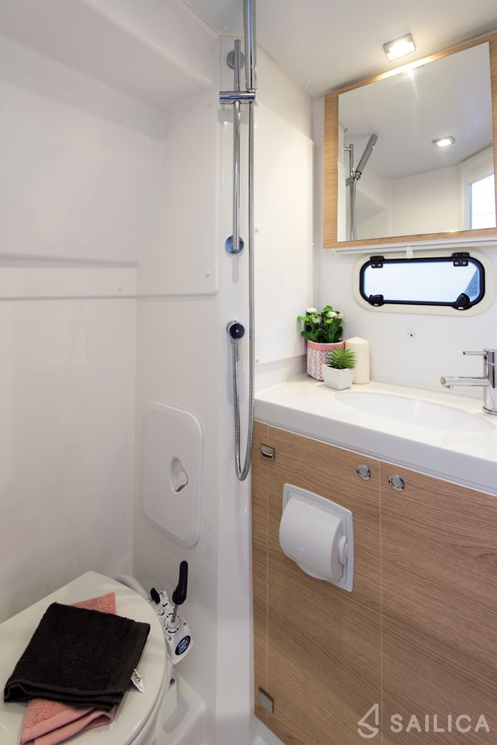 На Bali 5.4. Alfa.bm2 есть все условия для комфортного отдыха: 5 гальюна, Лейзи бег, Микроволновая печь, Кухонная утварь, Спасательное оборудование, Анемоментр/Ворона.
