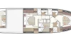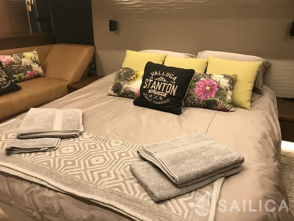 В 3 каютах могут комфортно разместиться до 6 человек. На лодке есть все необходимое для комфортного путешествия: 3 туалета (гальюна), 220V sockets, Тиковая палуба, Микроволновая печь, Горячая вода, Hydraulic gangway.