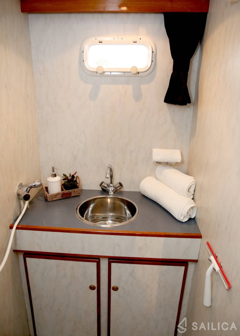 В 3 каютах могут комфортно разместиться до 6 человек. На лодке есть все необходимое для комфортного путешествия: 2 туалета (гальюна), Радио и CD, подрулька, TV, Refrigerator, Heating.
