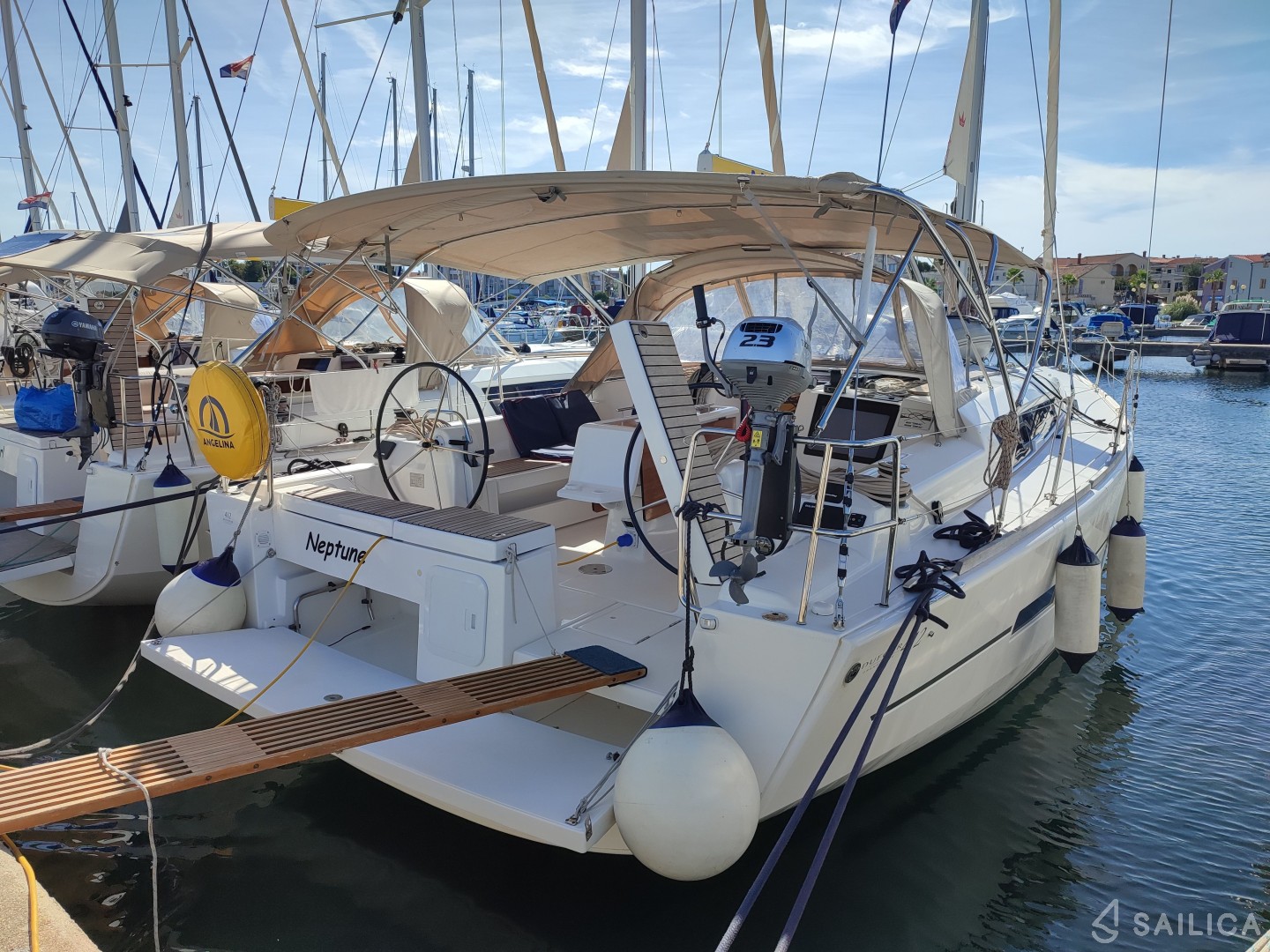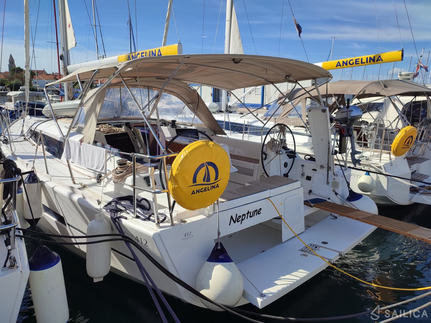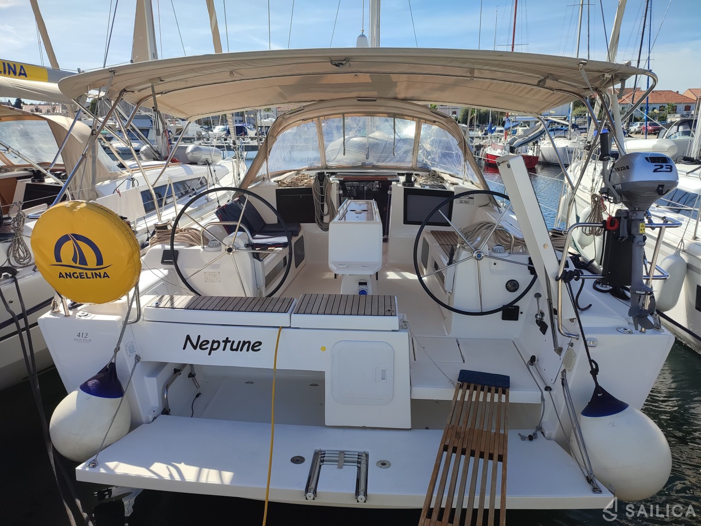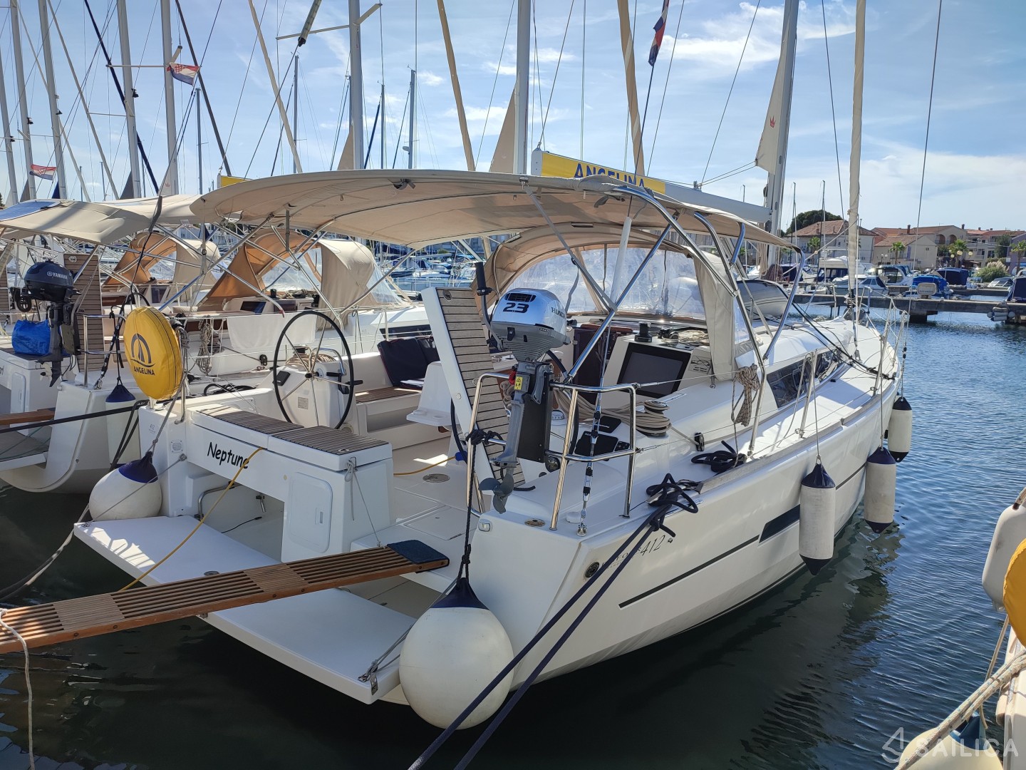 Dufour 412 GL Neptune — парусная яхта, которая была построена в 2020 году и принадлежит чартерной компании Angelina Yachtcharter. Количество человек, на которые рассчитана яхта — 6, количество кают — 3, гальюнов (туалетов) — 2. После аренды Dufour 412 GL, вам необходимо прибыть на место check-in — Марина Сангулин, Хорватия.