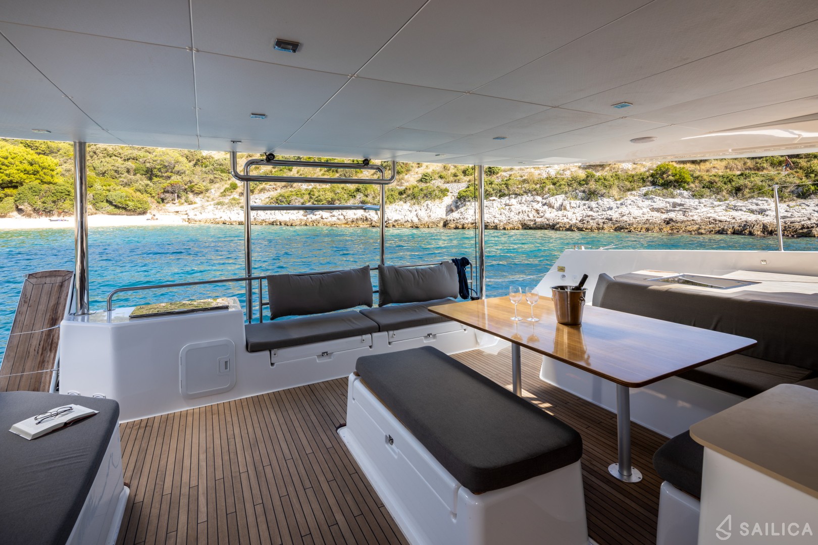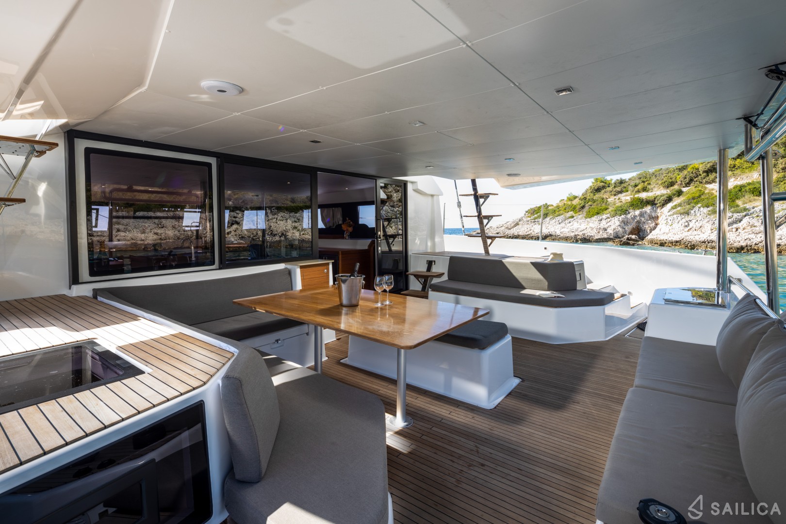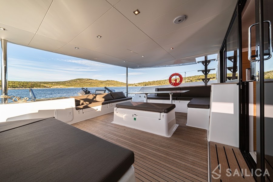 Dufour 48 NOX — катамаран 2021 года выпуска от чартерной компании Under the Heavens Sailing. Катамаран принимает до 12 человек, которые могут расположиться в 6 каютах.