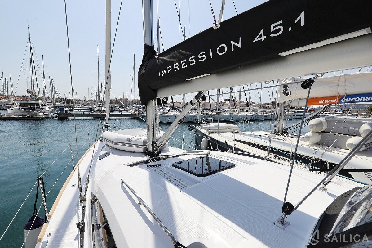 Elan Impression 45.1 Jackpot — парусная яхта, которая была построена в 2022 году и принадлежит чартерной компании Euronautic. Количество человек, на которые рассчитана яхта — 8, количество кают — 4, гальюнов (туалетов) — 2. После аренды Elan Impression 45.1, вам необходимо прибыть на место check-in — Марина Корнати, Хорватия.