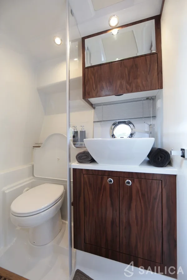В 2 каютах могут комфортно разместиться до 4 человек. На лодке есть все необходимое для комфортного путешествия: 1 туалета (гальюна), Тиковая палуба, GPS чартплоттер, Аптечка, Спасательные жилеты, Навигационные огни.