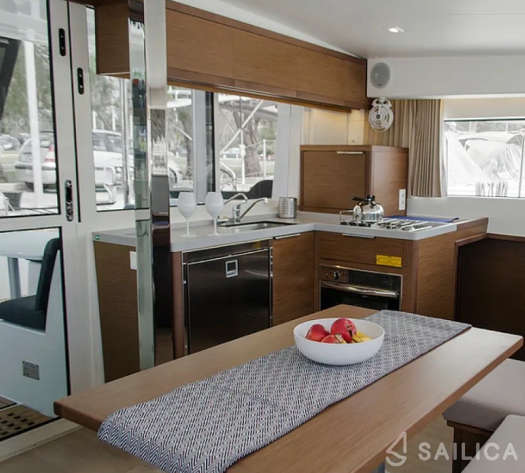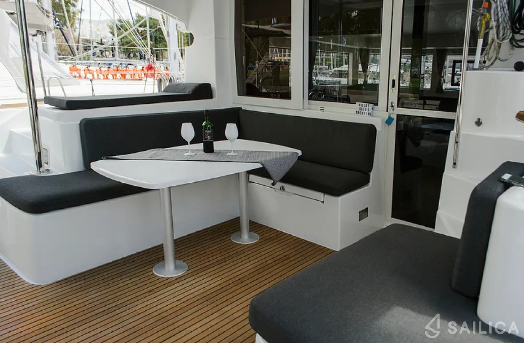 На Lagoon 40 ANEMONE есть все условия для комфортного отдыха: 4 гальюна, Чартплоттер, Тиковый кокпит, Электрический гальюн, Water maker, Convertible table.
