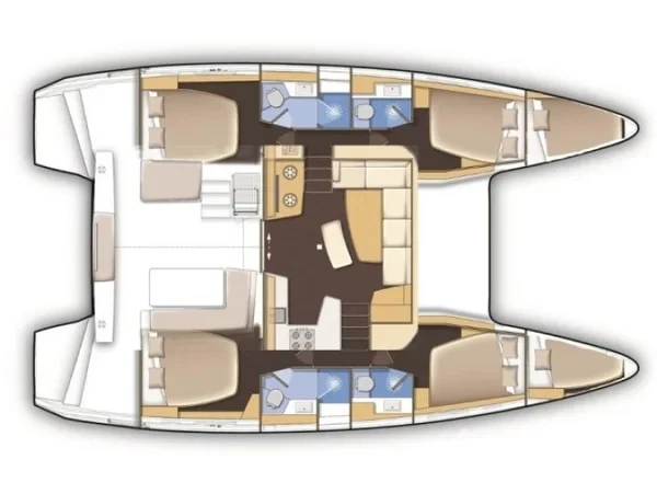 На Lagoon 42 CUZAMEN есть все условия для комфортного отдыха: 4 гальюна, Лейзи бег, Генуя с скруткой, Wi-Fi, Динамики в кокпите, Full baten main sail.