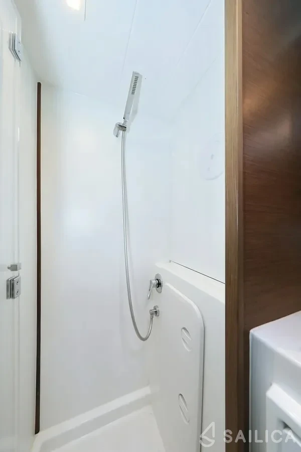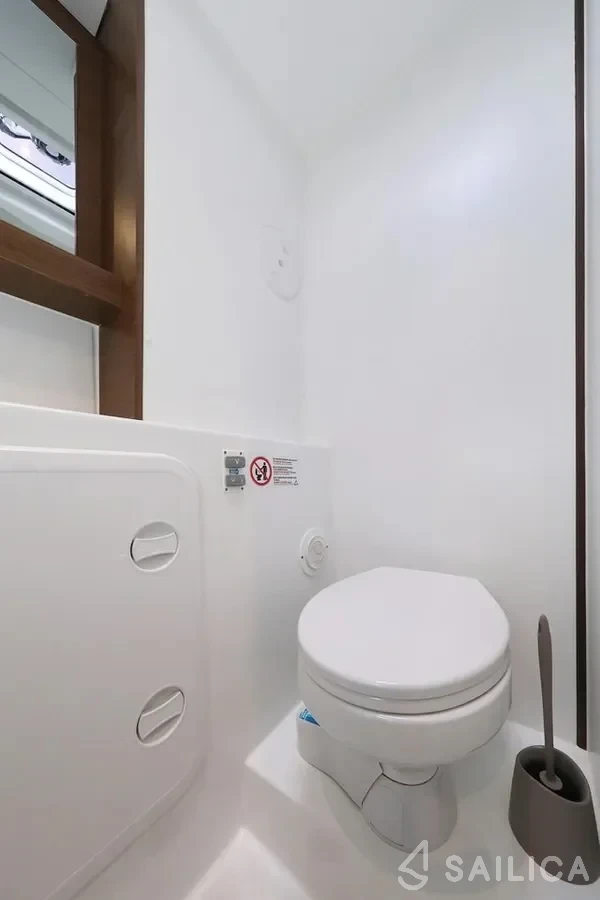 На Lagoon 42 Lila есть все условия для комфортного отдыха: 4 гальюна, Лейзи бег, Кранцы, Динамики в кокпите, Electric WC, Wi-Fi.