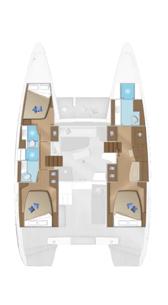 На Lagoon 42 Akala есть все условия для комфортного отдыха: 3 гальюна, Горячая вода, Анемоментр/Ворона, Брашпиль, АИС, Душ в кокпите.
