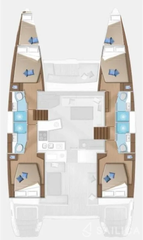 На Lagoon 450 Flybridge Sunce есть все условия для комфортного отдыха: 4 гальюна, Горячая вода, Береговое питание 220В, Аптечка, Барометр, Часы.