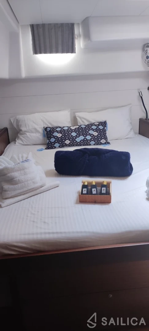 Lagoon 450 Flybridge Aelia — катамаран 2020 года выпуска от чартерной компании Aelia Yachting. Катамаран принимает до 12 человек, которые могут расположиться в 6 каютах.