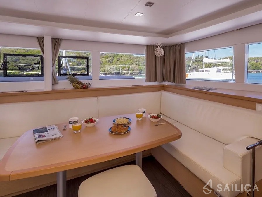 Lagoon 450 Flybridge GIN TONIC — катамаран 2016 года выпуска от чартерной компании Vernicos Yachts. Катамаран принимает до 12 человек, которые могут расположиться в 6 каютах.