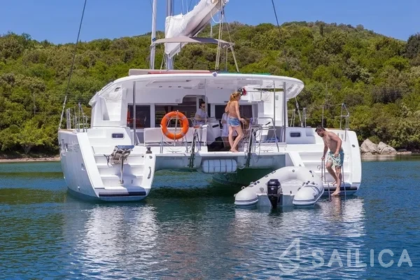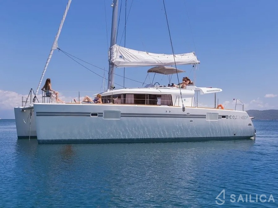 Аренда катамарана Lagoon 450 Flybridge GIN TONIC — отличный способ хорошо отдохнуть и увидеть живописную береговую линию Греции с неожиданных ракурсов.
