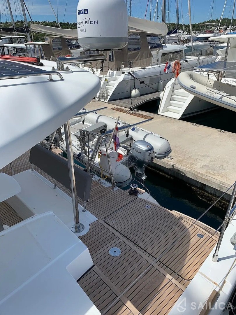 На Lagoon 450 S - 4 + 2 cab. Oryx есть все условия для комфортного отдыха: 4 гальюна, GPS, Платформа для купания, Ледогенератор, Горячая вода, Тиковый кокпит.