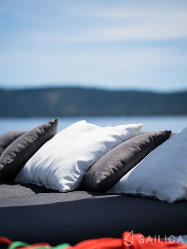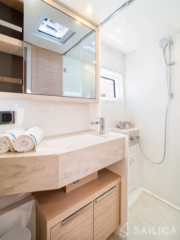 На Lagoon 46 MADAME EL GRANDE (WITH AC & GENERATOR) есть все условия для комфортного отдыха: 4 гальюна, Лейзи бег, Спасательное оборудование, Тиковый кокпит, АИС, Кухонная утварь.