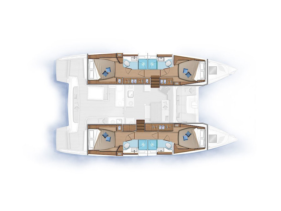 Lagoon 46 MADAME EL GRANDE (WITH AC & GENERATOR) — катамаран 2021 года выпуска от чартерной компании Ocean Sailing House. Катамаран принимает до 12 человек, которые могут расположиться в 6 каютах.