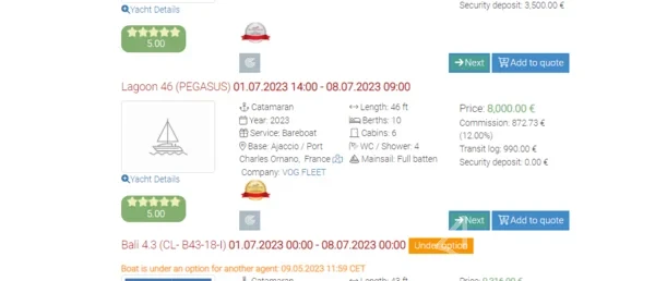 Lagoon 46 PEGASUS — катамаран 2023 года выпуска от чартерной компании VOG FLEET. Катамаран принимает до 8 человек, которые могут расположиться в 4 каютах.