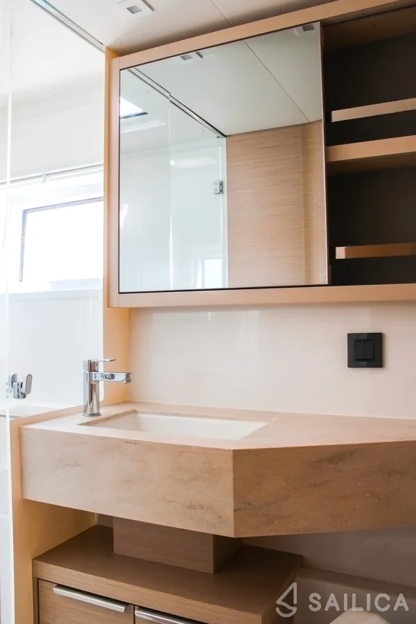 На Lagoon 46 L’Orceo есть все условия для комфортного отдыха: 4 гальюна, Лейзи бег, VHF радио, ђадио,.