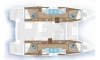 На Lagoon 46 Aurora есть все условия для комфортного отдыха: 4 гальюна, Лейзи бег, Гальюнный танк, Горячая вода, Брашпиль, Hydraulic gangway.