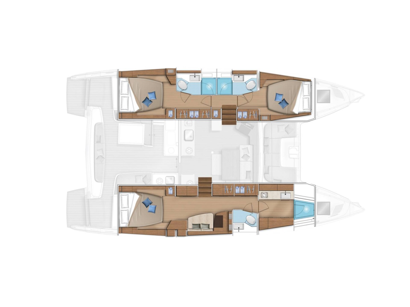 Lagoon 46 JEMALE — катамаран 2023 года выпуска от чартерной компании Corsica Multicoques. Катамаран принимает до 6 человек, которые могут расположиться в 3 каютах.