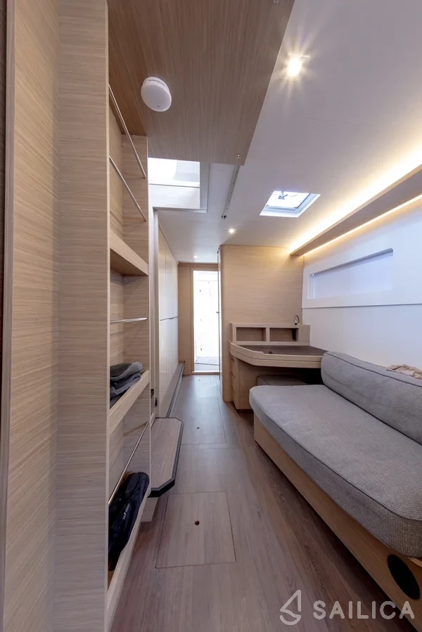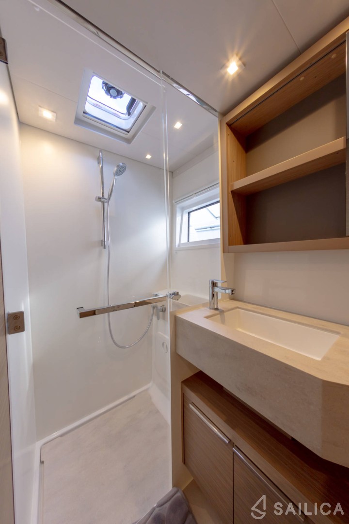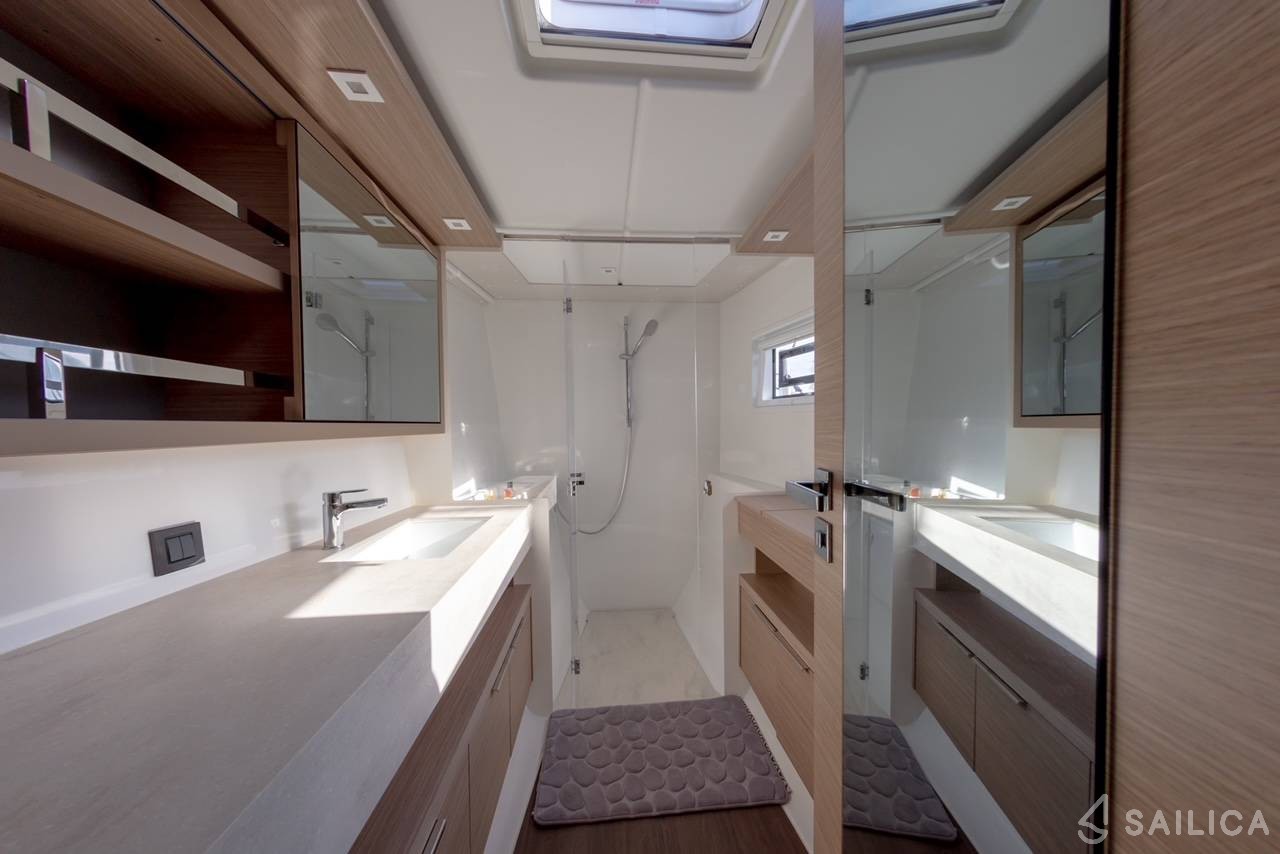 На Lagoon 46 JEMALE есть все условия для комфортного отдыха: 4 гальюна, Лейзи бег, Радар, VHF радио, ђадио,.