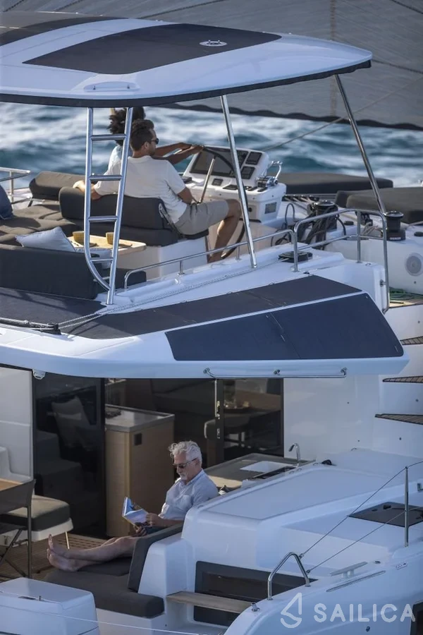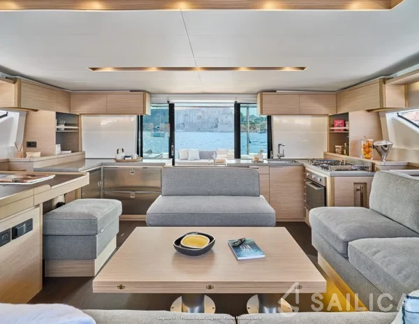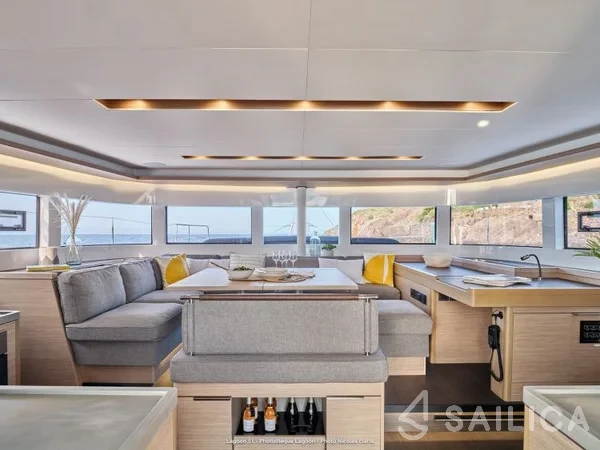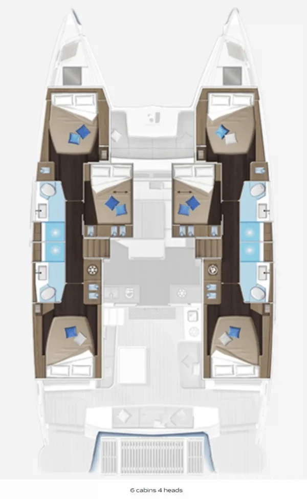 На Lagoon 51 Slinky Malinki есть все условия для комфортного отдыха: 4 гальюна, Лейзи бег, Приборы, Микроволновая печь, Горячая вода, Анемоментр/Ворона.