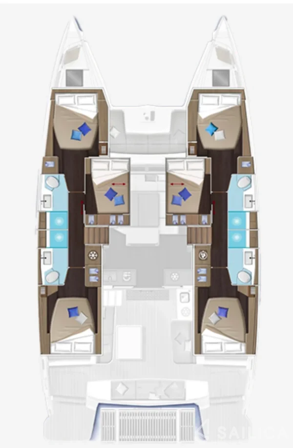 Lagoon 51 Escapade — катамаран 2025 года выпуска от чартерной компании Navigare Yachting. Катамаран принимает до 14 человек, которые могут расположиться в 7 каютах.