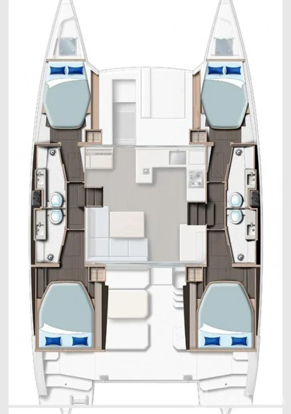 Leopard 42 Orpin — катамаран 2024 года выпуска от чартерной компании Sail italia. Катамаран принимает до 8 человек, которые могут расположиться в 4 каютах.