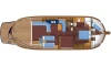 В 3 каютах могут комфортно разместиться до 6 человек. На лодке есть все необходимое для комфортного путешествия: 2 туалета (гальюна), Микроволновая печь, Dishwasher, GPS чартплоттер, Кофемашина, Washing machine.