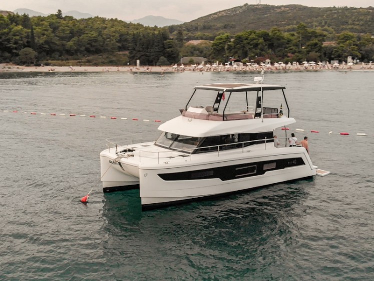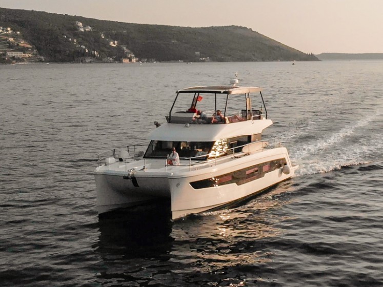 Аренда катамарана MY40 Pelican — отличный способ хорошо отдохнуть и увидеть живописную береговую линию Черногории с неожиданных ракурсов.