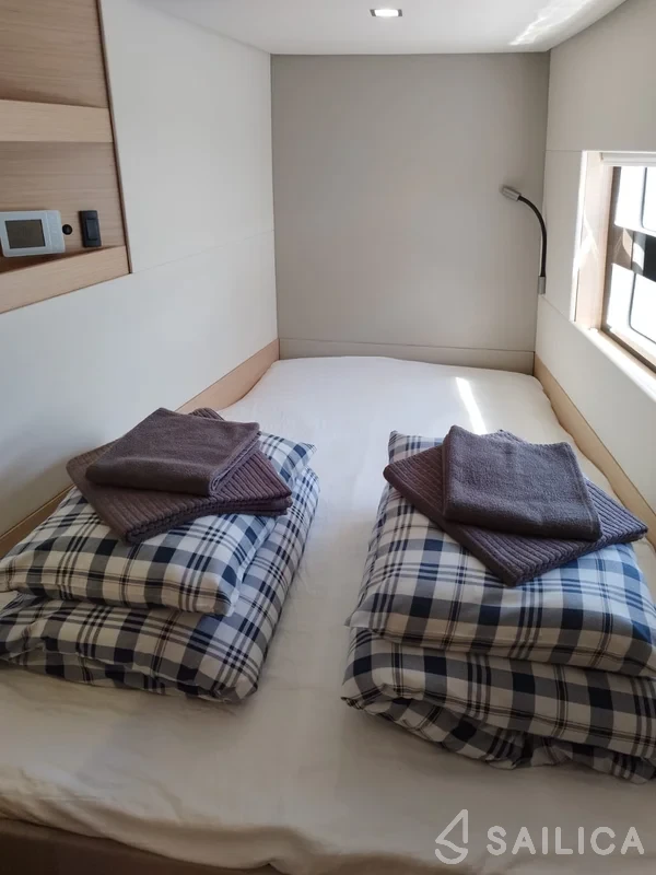 На Nautitech 40 Negroni есть все условия для комфортного отдыха: 2 гальюна, Лейзи бег, Розетки 12В, 220V sockets, Платформа для купания, Automatic life jacket .