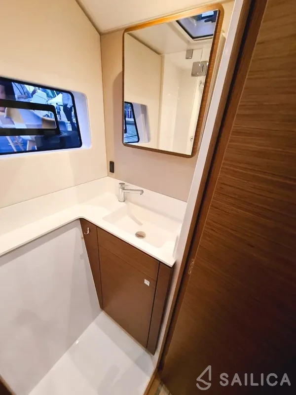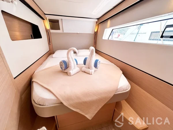 На Nautitech 44 Sempre Verde есть все условия для комфортного отдыха: 2 гальюна, Лейзи бег, Приборы, Микроволновая печь, Горячая вода, Анемоментр/Ворона.