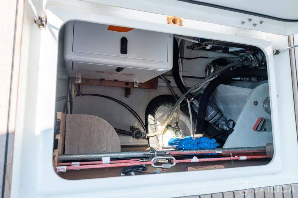 В комплектацию парусной яхты включено такое оборудование, как Генуя с скруткой, Лейзи бег, Горячая вода, АИС, Аварийный румпель и прочее. С полным оснащением, дополнительными услугами и их ценами можно ознакомиться ниже.