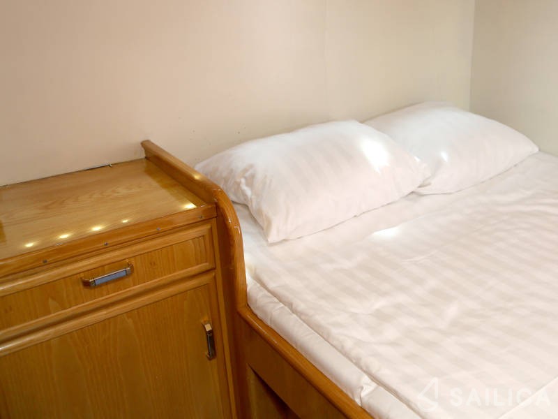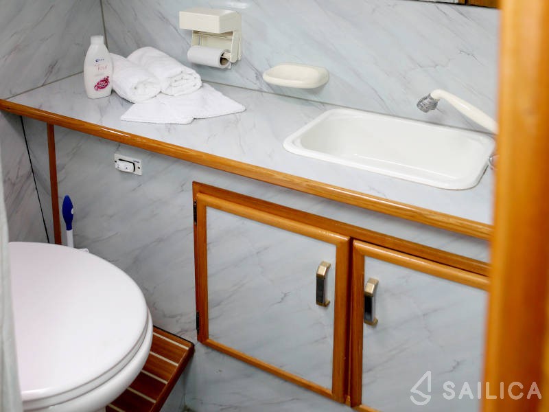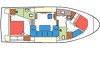 В 2 каютах могут комфортно разместиться до 4 человек. На лодке есть все необходимое для комфортного путешествия: 2 туалета (гальюна), Радио и CD, подрулька, TV, Refrigerator, Heating.