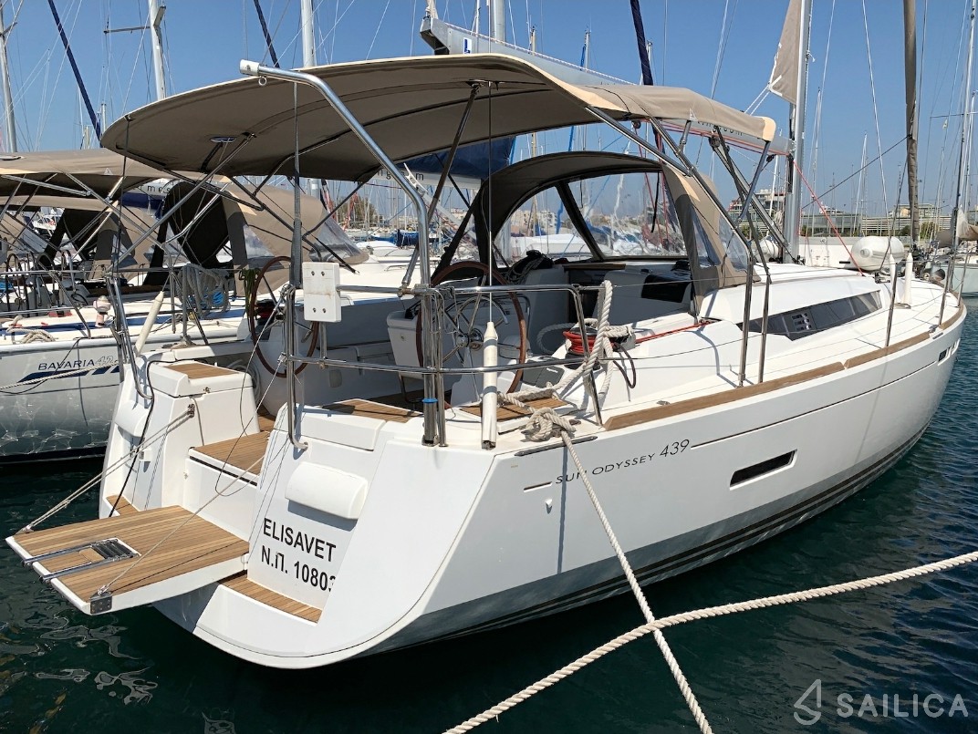 Sun Odyssey 439 Elisavet — парусная яхта, которая была построена в 2012 году и принадлежит чартерной компании Dynamic Sailing. Количество человек, на которые рассчитана яхта — 8, количество кают — 4, гальюнов (туалетов) — 2. После аренды Sun Odyssey 439, вам необходимо прибыть на место check-in — Олимпик Марина, Греция.