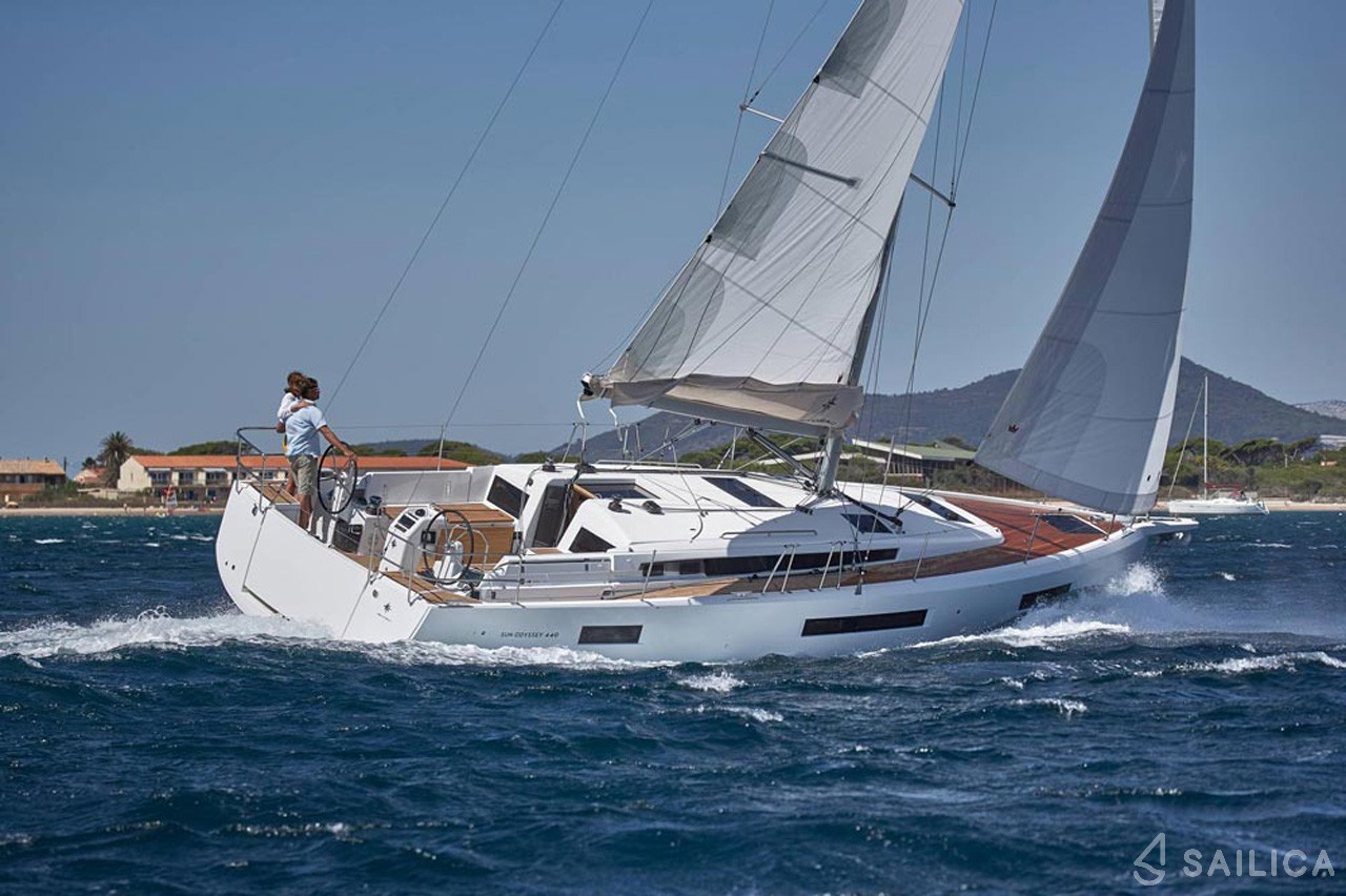 Sun Odyssey 440 Sagittarius — парусная яхта, которая была построена в 2023 году и принадлежит чартерной компании Nautic Alliance. Количество человек, на которые рассчитана яхта — 8, количество кают — 4, гальюнов (туалетов) — 2. После аренды Sun Odyssey 440, вам необходимо прибыть на место check-in — SCT Марина Трогир, Хорватия.