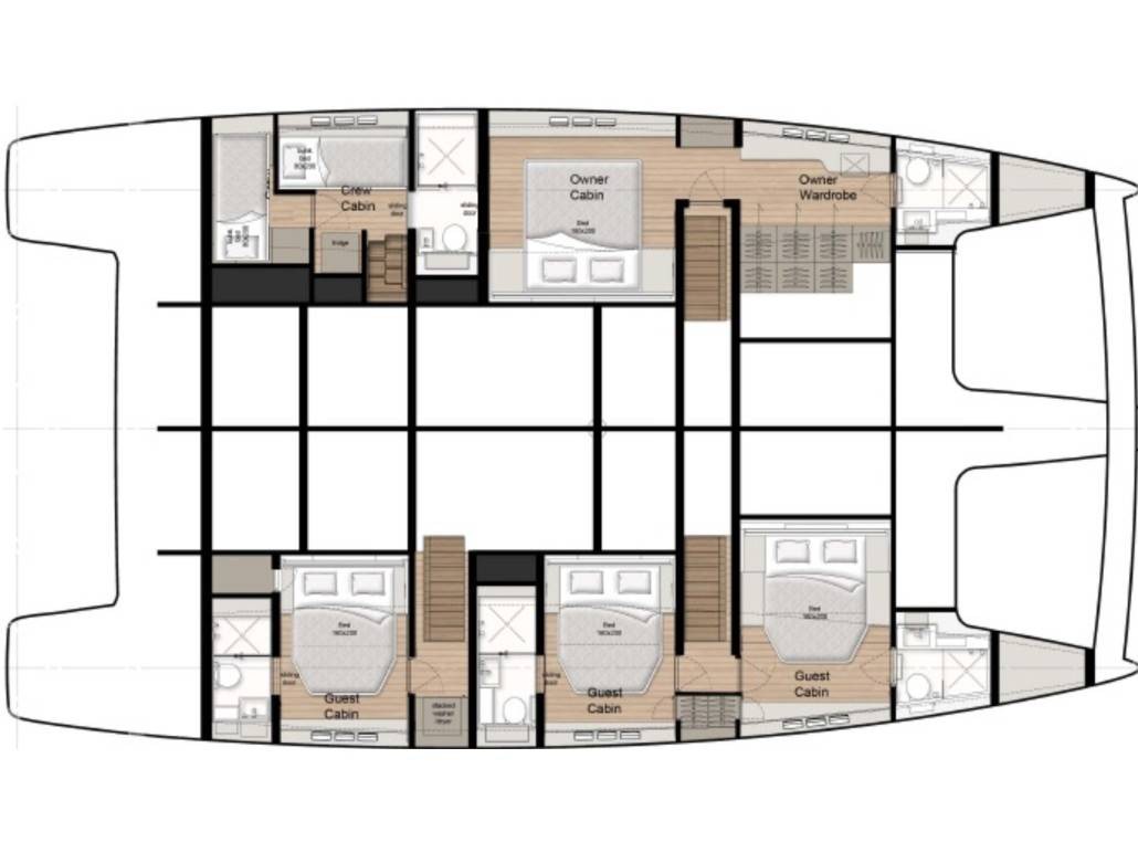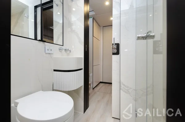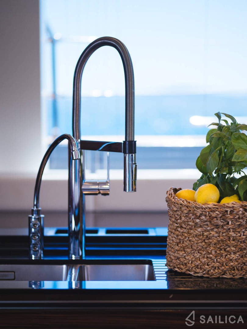 На Sunreef 60 DESSUS есть все условия для комфортного отдыха: 4 гальюна, Платформа для купания, Тиковая палуба, Микроволновая печь, Горячая вода, Анемоментр/Ворона.