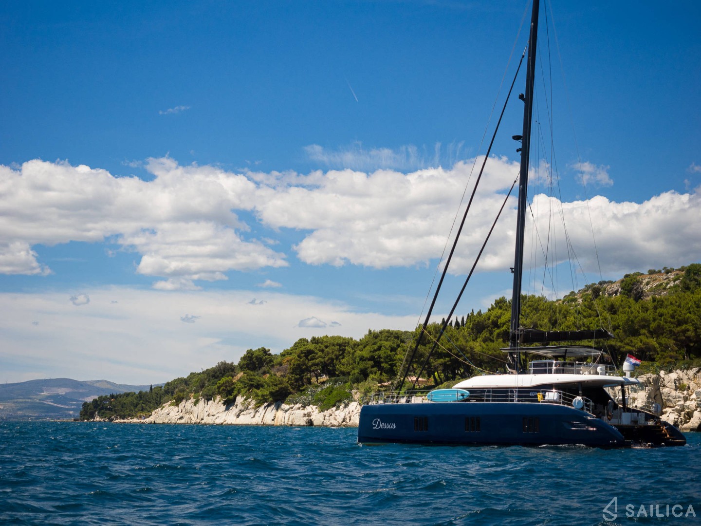 Аренда катамарана Sunreef 60 DESSUS — отличный способ хорошо отдохнуть и увидеть живописную береговую линию Хорватии с неожиданных ракурсов.