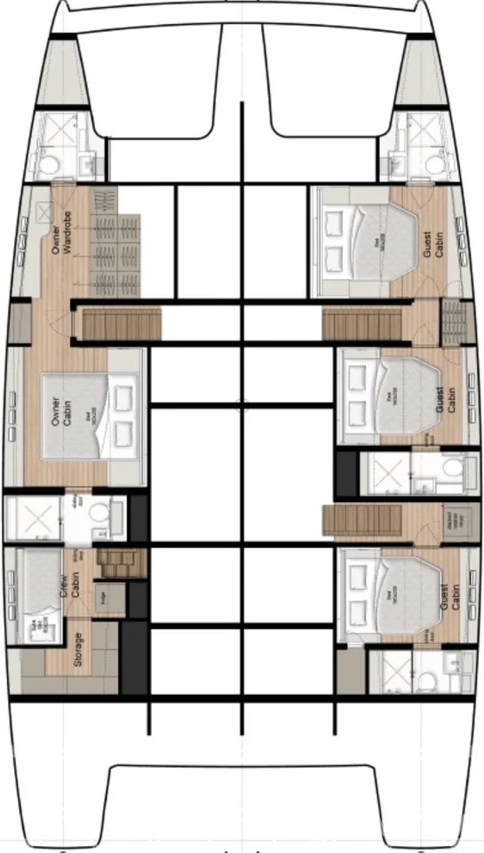 Sunreef 60 DESSUS — катамаран 2022 года выпуска от чартерной компании Ocean Sailing House. Катамаран принимает до 8 человек, которые могут расположиться в 4 каютах.